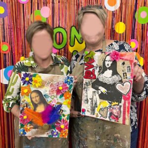 - Take Your Funky Masterpiece Home: The best part? You’ll proudly leave with your very own unique, mixed media Mona Lisa. This isn’t just a painting; it’s a statement piece, a conversation starter, and a testament to your artistic flair!